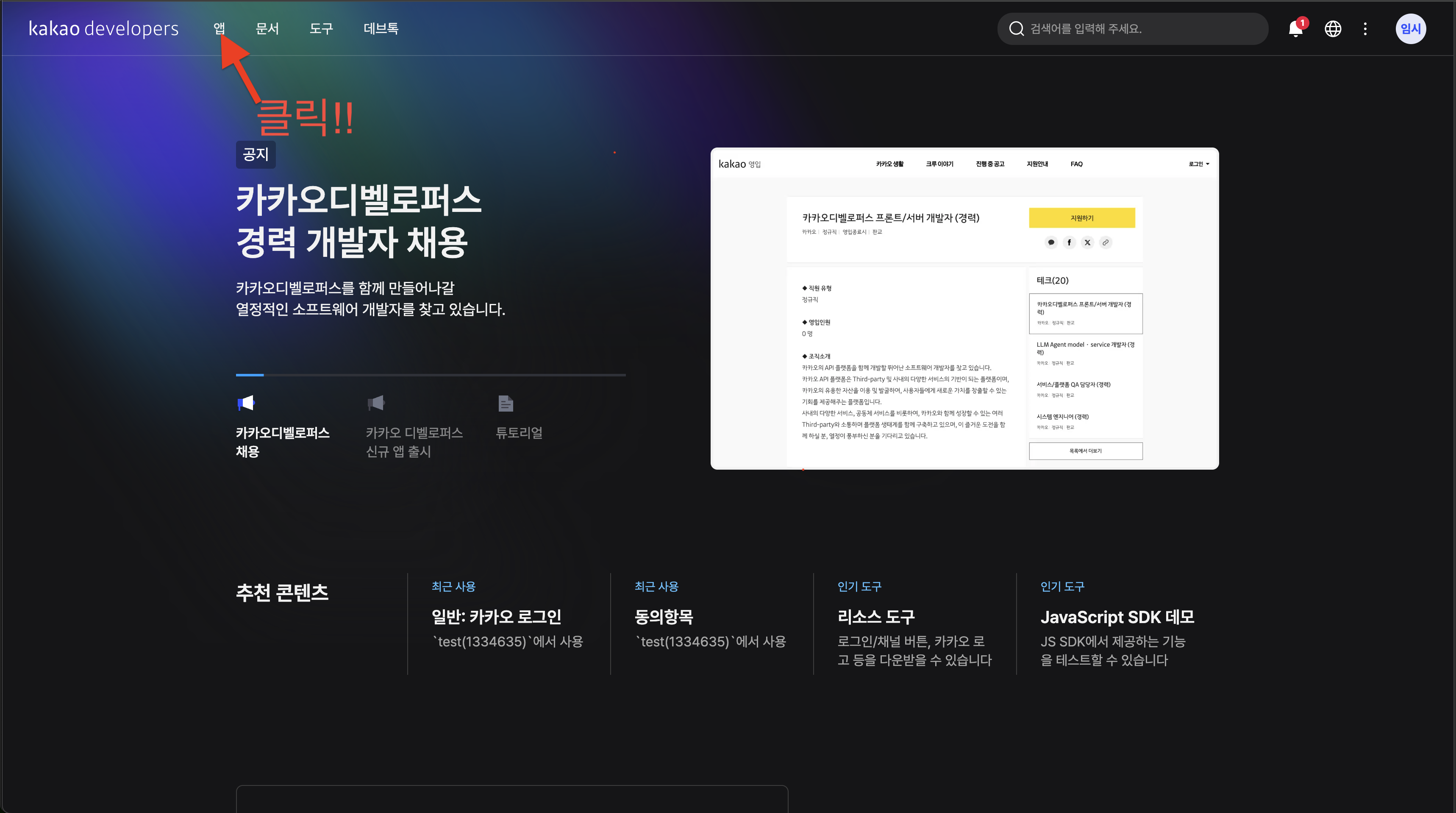 - 메인페이지에서 앱을 클릭