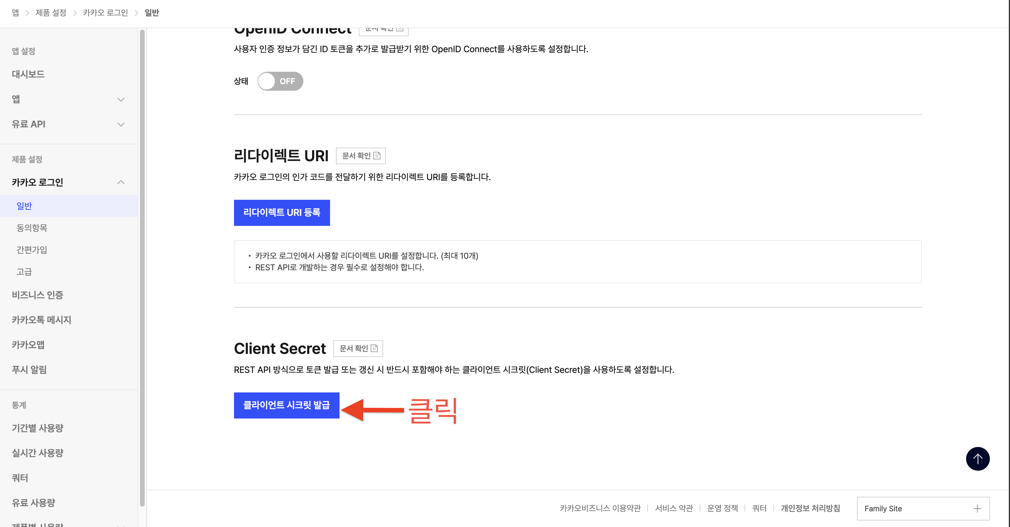 - 카카오 로그인 -> 일반 -> Client Secret에서 클라이언트 시크릿 발급 클릭