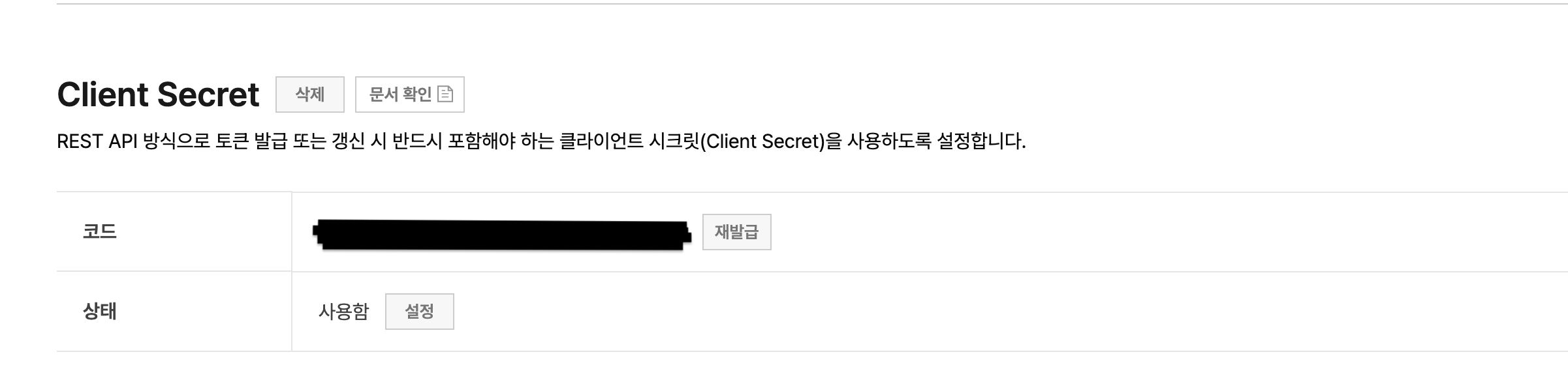 - 클라이언트 시크릿을 활성화를 위해 설정 클릭